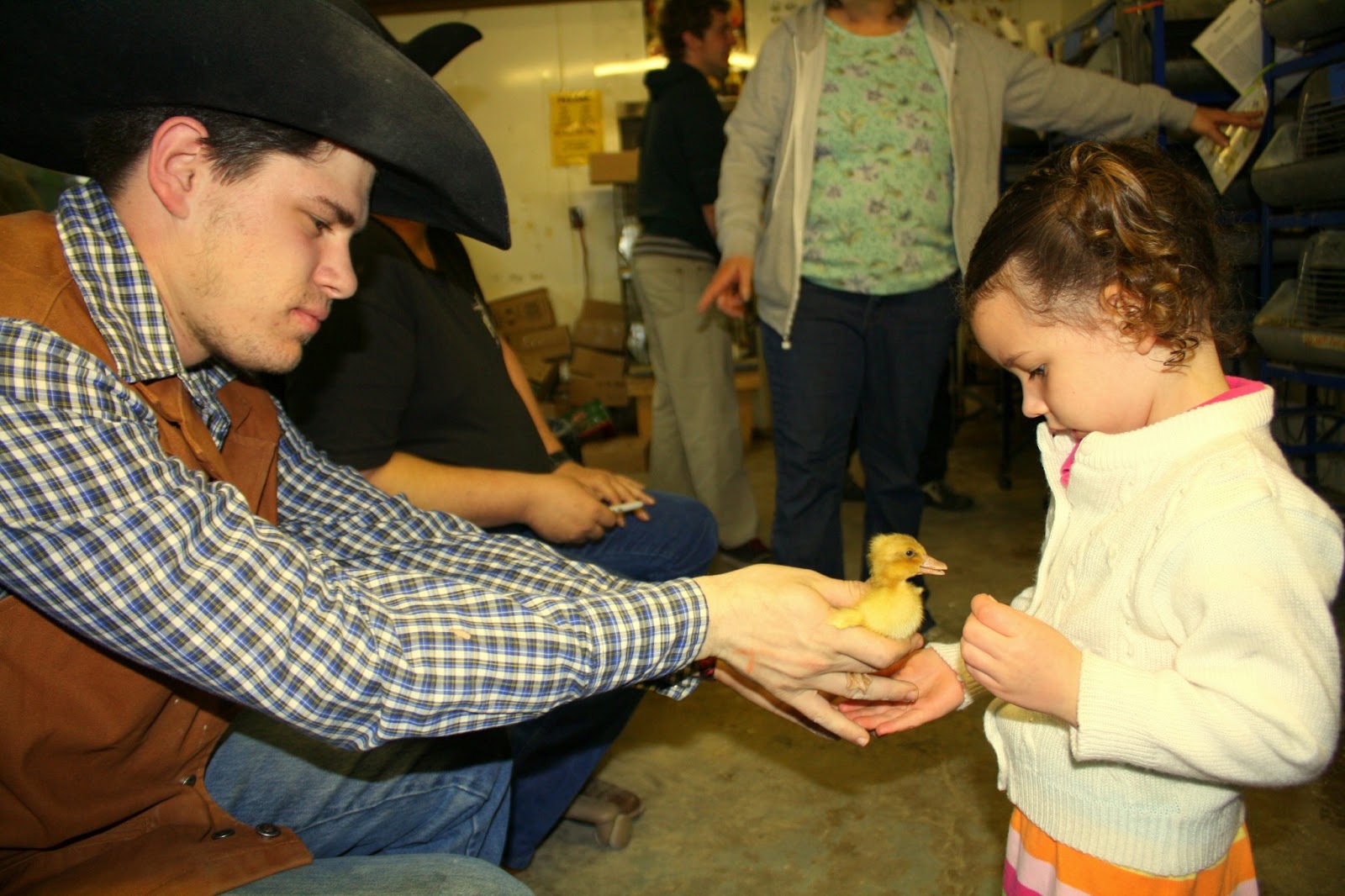 Sometimes there are miniature horses to see or Clydesdales being led around the parking lot. There is a back room filled with cheeping baby chicks and ducks. In the loading area, there are more animals for sale.