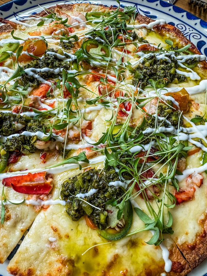 As for the food, the menu boasts an impressive list of shareable starters. Guacamole and queso are served, of course. But the highlight for us is the Lobster Quesadilla Pizza. We weren’t sure about this one when we saw the list of ingredients. But, dang, they know what they’re doing because this item is mighty tasty.