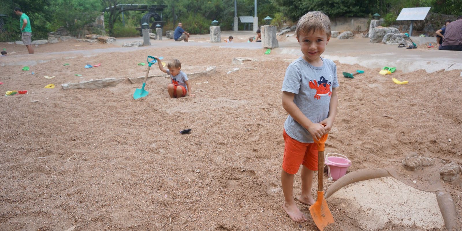 Chisholm Valley Park, 1201 Trey St, Round Rock. This park has a tiny sand pit that’s barely worth mentioning, but the park itself is really cool and this might be the perfect size for the tiniest diggers to play. There are dinosaur bones to discover under the sand, so don’t forget your brushes and shovels.